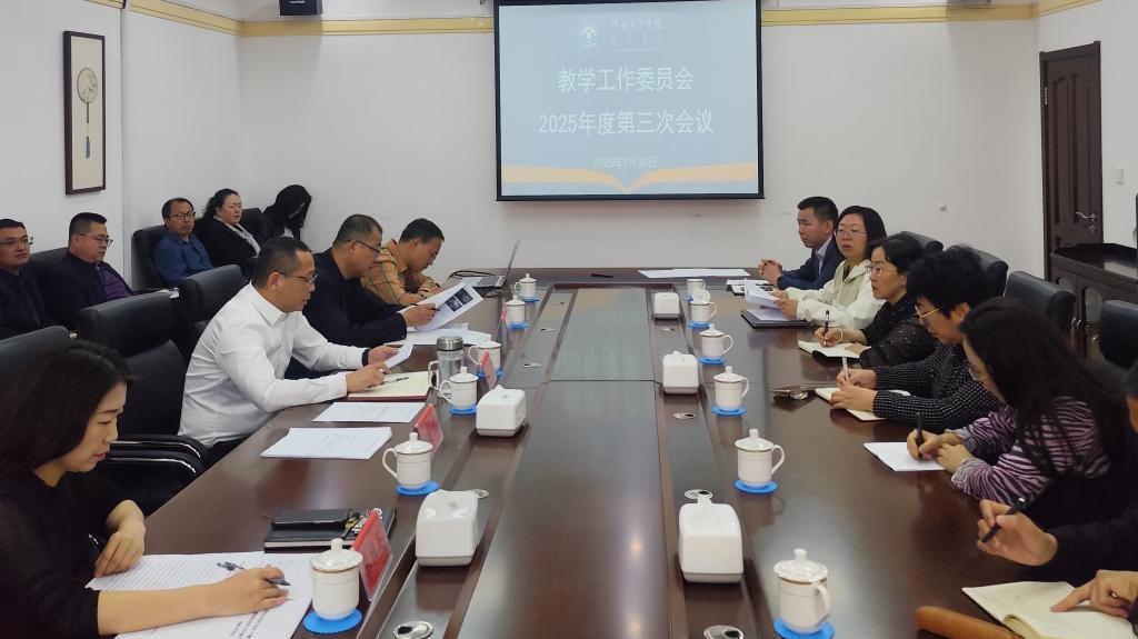 为进一步推动学校教育教学高质量发展,9月30日上午,我校教学工作委员会在逸夫楼419会议室召开2025年第三次会议,重点审议三个引企入校项目和成立三个中心相关事宜。校党委副书记、校长、校教学工作委员会主任张玉柱,校党委副书记张宏天,校党委委员、副校长张桂芝出席会议,学校教学工作委员会委员及教务处相关工作人员参加会议。会议由张玉柱主持。