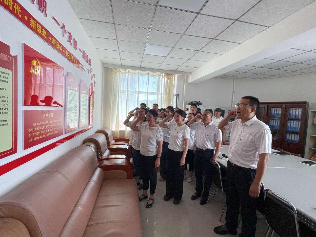 6月27日,面对鲜艳的党旗,全体党员高举右拳,庄严宣誓。这不仅是对入党初心的重温,更是对党员使命的再次铭记。誓词中所蕴含的忠诚、担当与奉献精神,如同熊熊燃烧的火焰,再次点燃了党员们心中的激情,让每名党员更加深刻地认识到自己肩负的责任与使命。